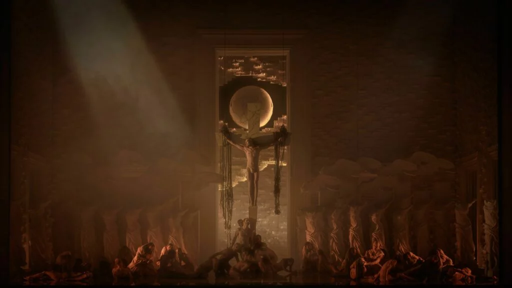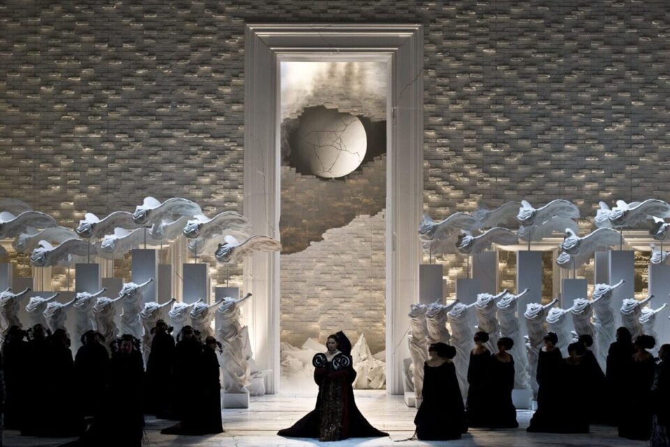 Bien que le livret du spectacle indique « nouvelle production », la mise en scène de Stefano Poda n'est pas récente (Théâtre régional de Turin, 2008), ce qui n'ôte rien à sa qualité. Le décor ne change pas durant les trois actes, les jeux de lumière modifiant totalement l'ambiance selon les tableaux, dont beaucoup sont tout en ombres à moitié floues. Le corps de ballet réalise le travail remarquable de ne presque rien faire, par des mouvements extrêmements lents, qui accompagnent parfaitement le manque d'action et remplissent tout l'espace scénique. C'est redoutable, parce que cela nous amène (les spectateurs) à nous concentrer sur les deux ou trois interprêtes sur scène.